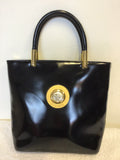 GIANNI VERSACE VINTAGE BLACK SHINY LEATHER HAND BAG