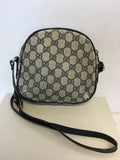 VINTAGE GUCCI NAVY BLUE MONOGRAMED CROSS BODY BAG