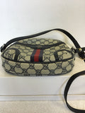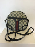 VINTAGE GUCCI NAVY BLUE TRIM MONOGRAM CROSS BODY BAG