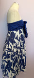 Vintage Jaeger Blue & White Print Strapless Cotton Dress Size UK 10/12