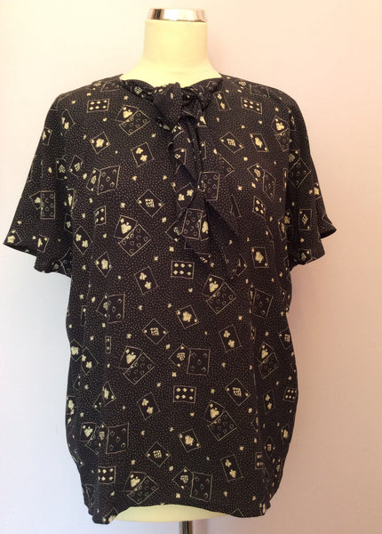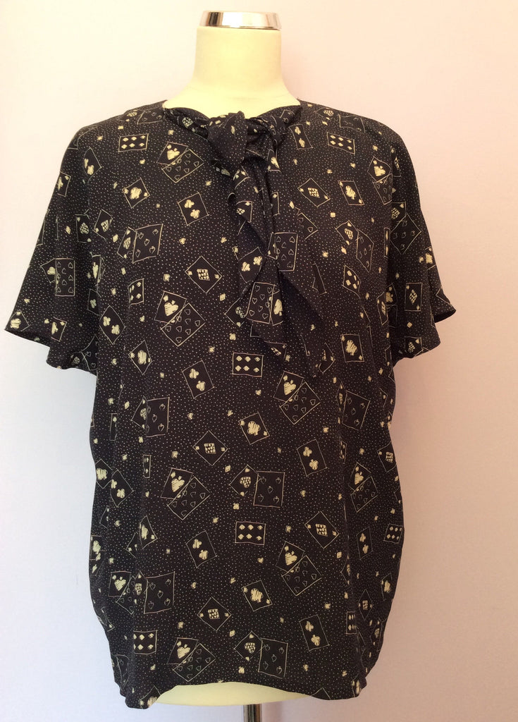 Vintage Jaeger Dark Blue Print Blouse Size 36" Approx 12/14