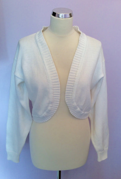 Vintage Jaeger White Cropped Cotton Cardigan Size 36" Approx M