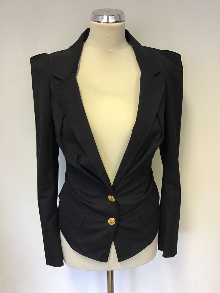 VIVIENNE WESTWOOD NAVY BLUE WOOL PLEATED TRIM FITTED JACKET SIZE 40 UK 8