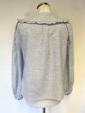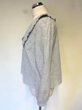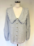 WHISTLES 100% COTTON BLUE &WHITE STRIPE & SPOT PETER PAN COLLARED LONG SLEEVED SHIRT SIZE 10