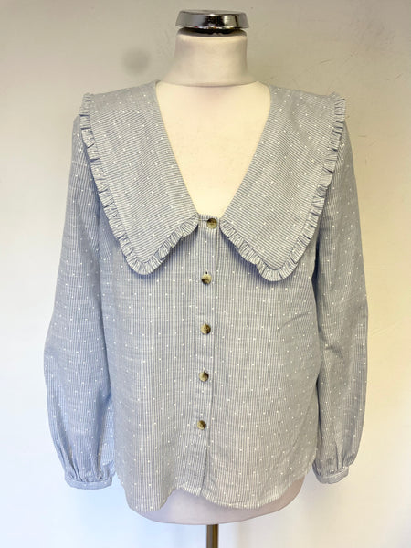 WHISTLES 100% COTTON BLUE & WHITE STRIPE & SPOT PETER PAN COLLARED LONG SLEEVED SHIRT