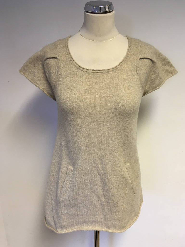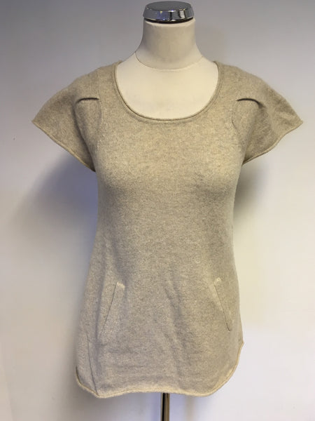 WHISTLES BEIGE CASHMERE SHORT SLEEVE JUMPER WITH POCKETS SIZE 2 UK 12