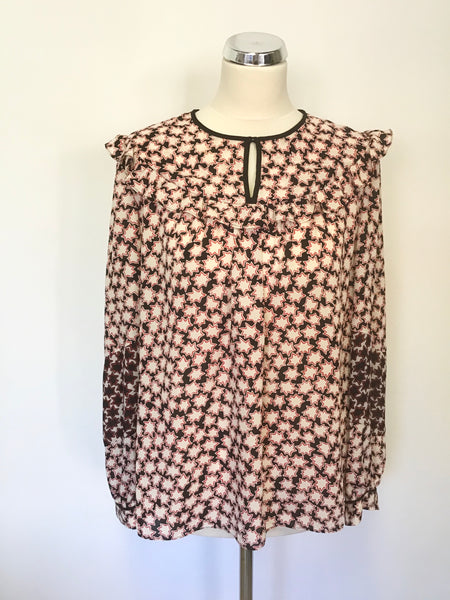 WHISTLES BLACK,IVORY & RED STAR PRINT LONG SLEEVE BLOUSE SIZE 14