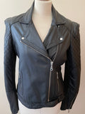 WHISTLES BLACK LEATHER ZIP UP BIKER JACKET SIZE 14 BUT FIT UK 12
