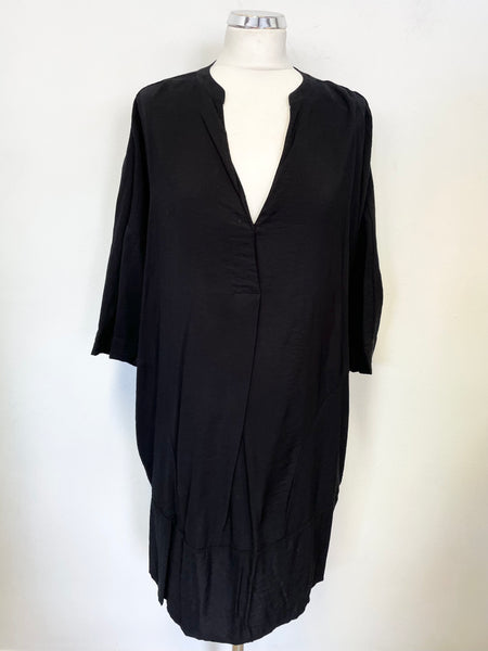 WHISTLES BLACK RELAXED FIT 3/4 SLEEVED SHIFT DRESS SIZE M
