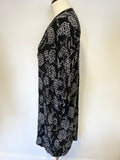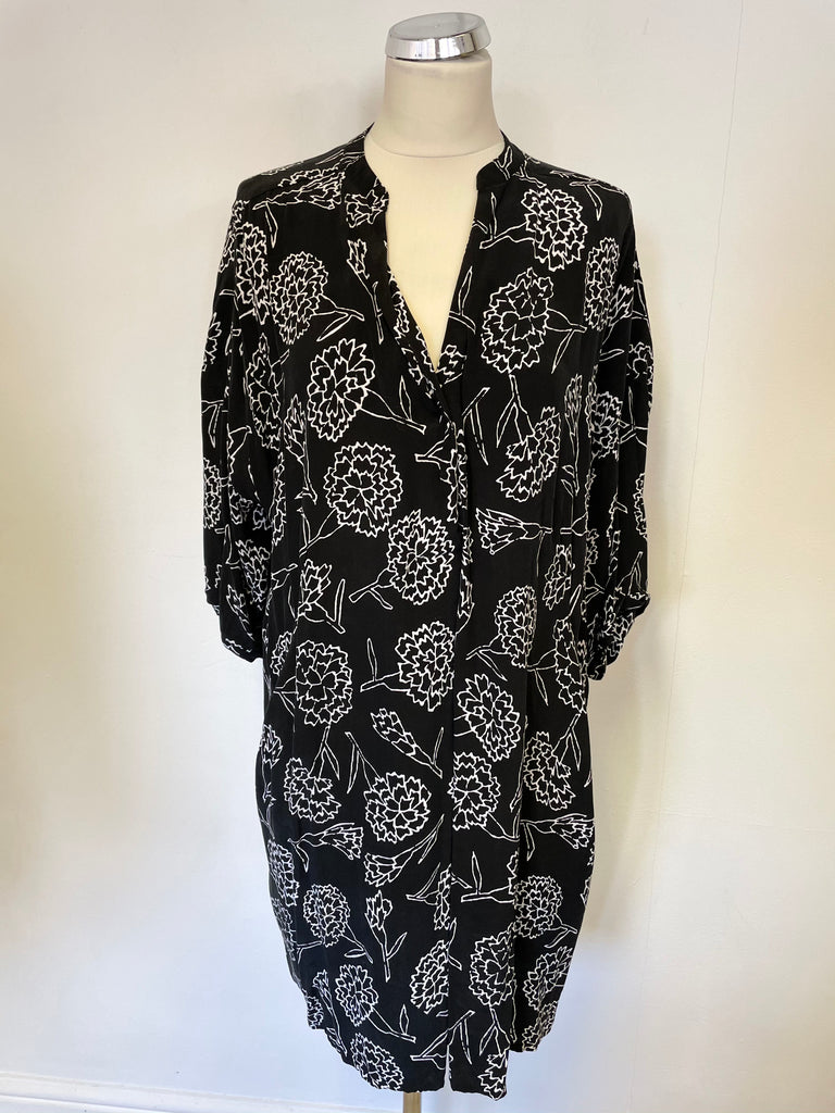 WHISTLES BLACK & WHITE FLORAL PRINT HALF SLEEVE RELAXED FIT SHIFT DRESS SIZE M