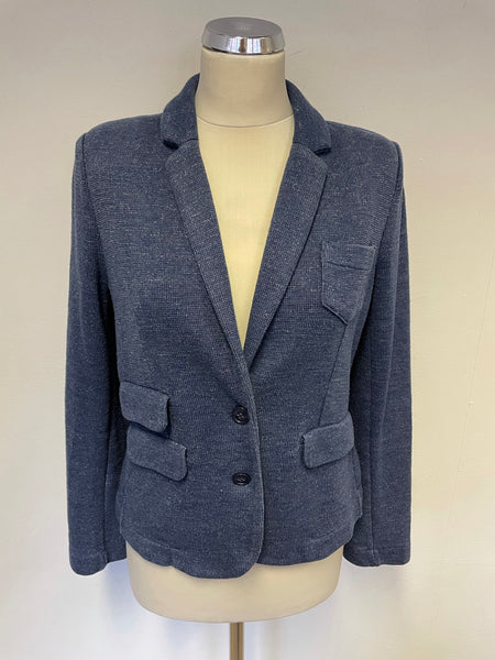 WHISTLES BLUE FITTED COTTON BLEND JACKET SIZE 10
