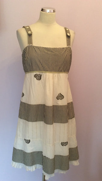 Whistles Ivory, Dark Grey Stripe & Gold Trim Dress Size 12