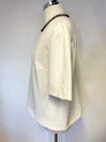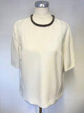 WHISTLES IVORY & PEWTER BEADED NECKLINE SHORT SLEEVE TOP SIZE 10