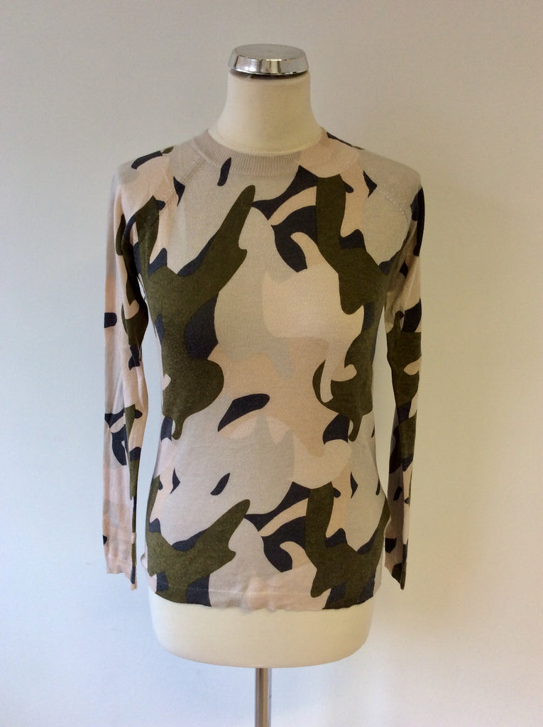 WHISTLES LIGHT PINK,GREYS & BROWN CAMOFLAGE PRINT JUMPER SIZE 8