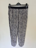 WHISTLES NAVY BLUE & WHITE PRINT ELASTICATED DRAWSTRING TIE TROUSERS SIZE 8