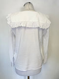 WHISTLES WHITE V NECK FRILL TRIM SAILOR COLLAR 3/4 SLEEVED BLOUSE SIZE 8