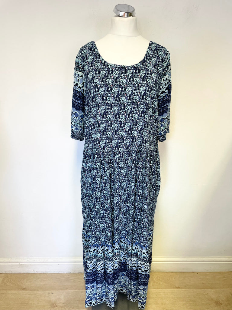 WHITE STUFF TURQUOISE & BLUE FLORAL PRINT SHORT SLEEVED MIDI DRESS SIZE 22