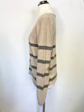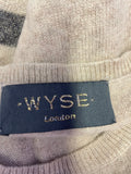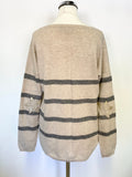 WYSE 100% CASHMERE BEIGE & GREY STRIPE LONG SLEEVED JUMPER SIZE M