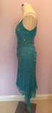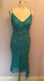 Yve London Turquoise Silk Beaded & Sequinned Cocktail Dress Size Small