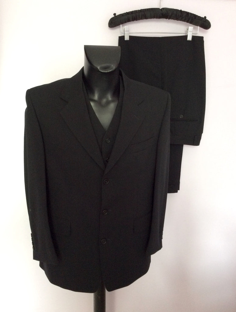 Yves Saint Laurent Black 3 Piece Wool Suit Size 40S/32W