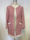 ZARA BASIC RED & WHITE DIAMOND WEAVE COLLARLESS FRINGED EDGE SHORT COAT SIZE XL