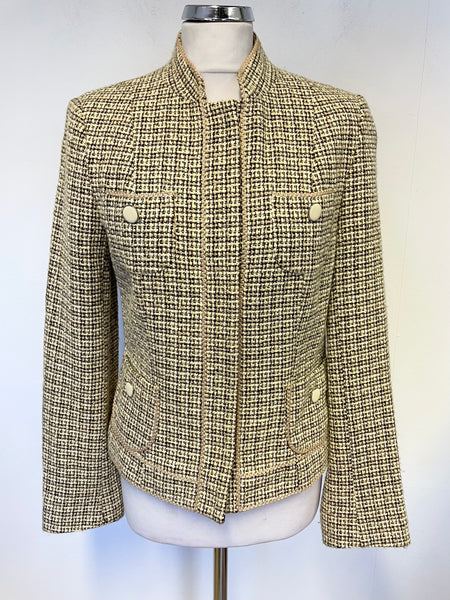 ZARA BEIGE TWEED WEAVE LONG SLEEVED JACKET SIZE 38 UK 10