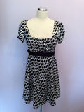 Zara Black & White Print Satin Belted Dress Size M