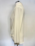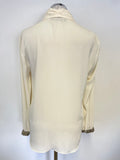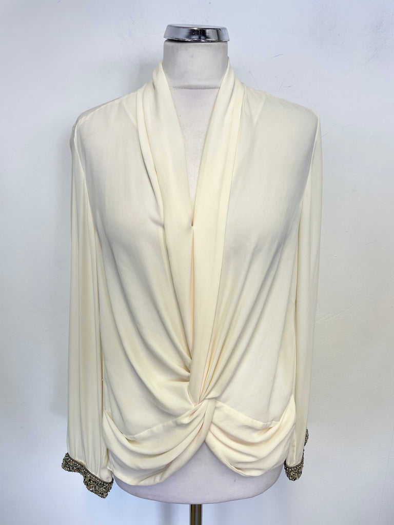 ZARA CREAM DRAPED FRONT LONG SLEEVE BEADED CUFF BLOUSE SIZE S