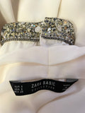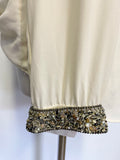 ZARA CREAM DRAPED FRONT LONG SLEEVED BEADED CUFF BLOUSE